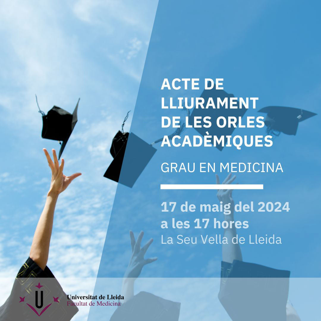 Descarregar PdfDemà, a les 17 hores, ens trobem a la Seu Vella de Lleida per celebrar l'Acte de lliurament de les orles acadèmiques del Grau en Medicina!